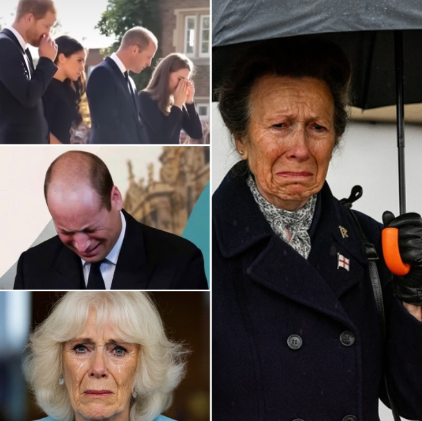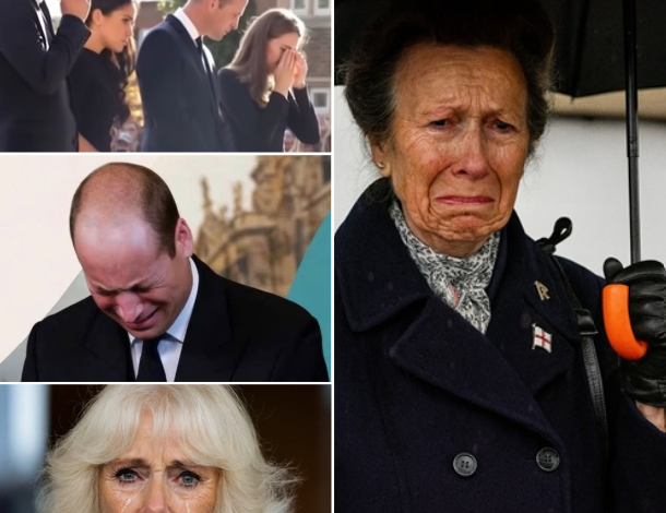 JUST IN — 10 MINUTES AGO! Camilla, trembling and voice breaking, implored: “Bow your heads…” Instantly, the royal hall was consumed by sorrow. Tears streamed down Prince William’s face as Catherine held tightly to his arm. Princess Anne braved wind and rain to be there, witnessing the heartbreaking scene. Outside, Buckingham Palace was shrouded in white as mourners whispered, “We are so sorry…”